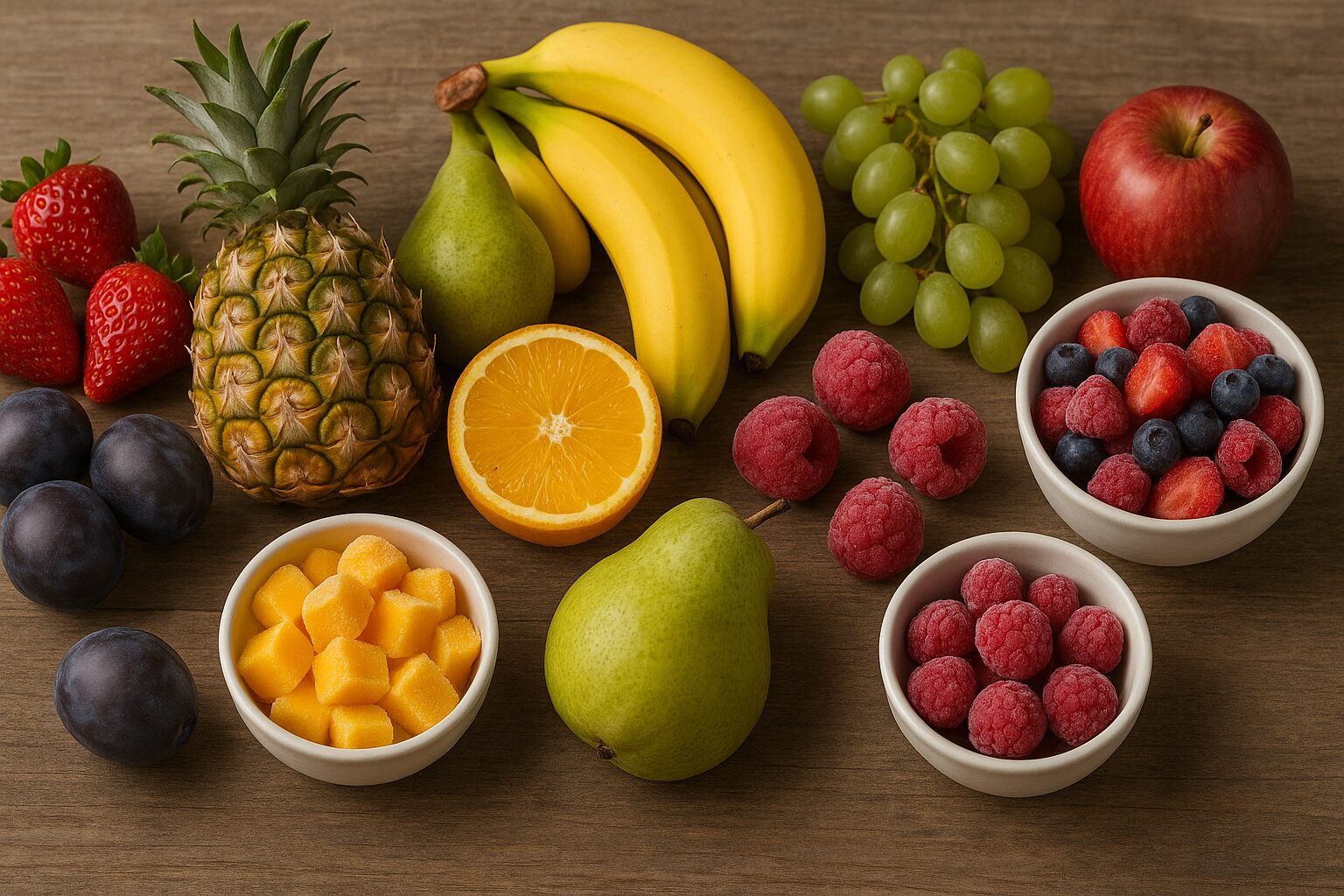 Frozen fruits (IQF): mango, pineapple, strawberry, passion fruit, and mixed pulps.